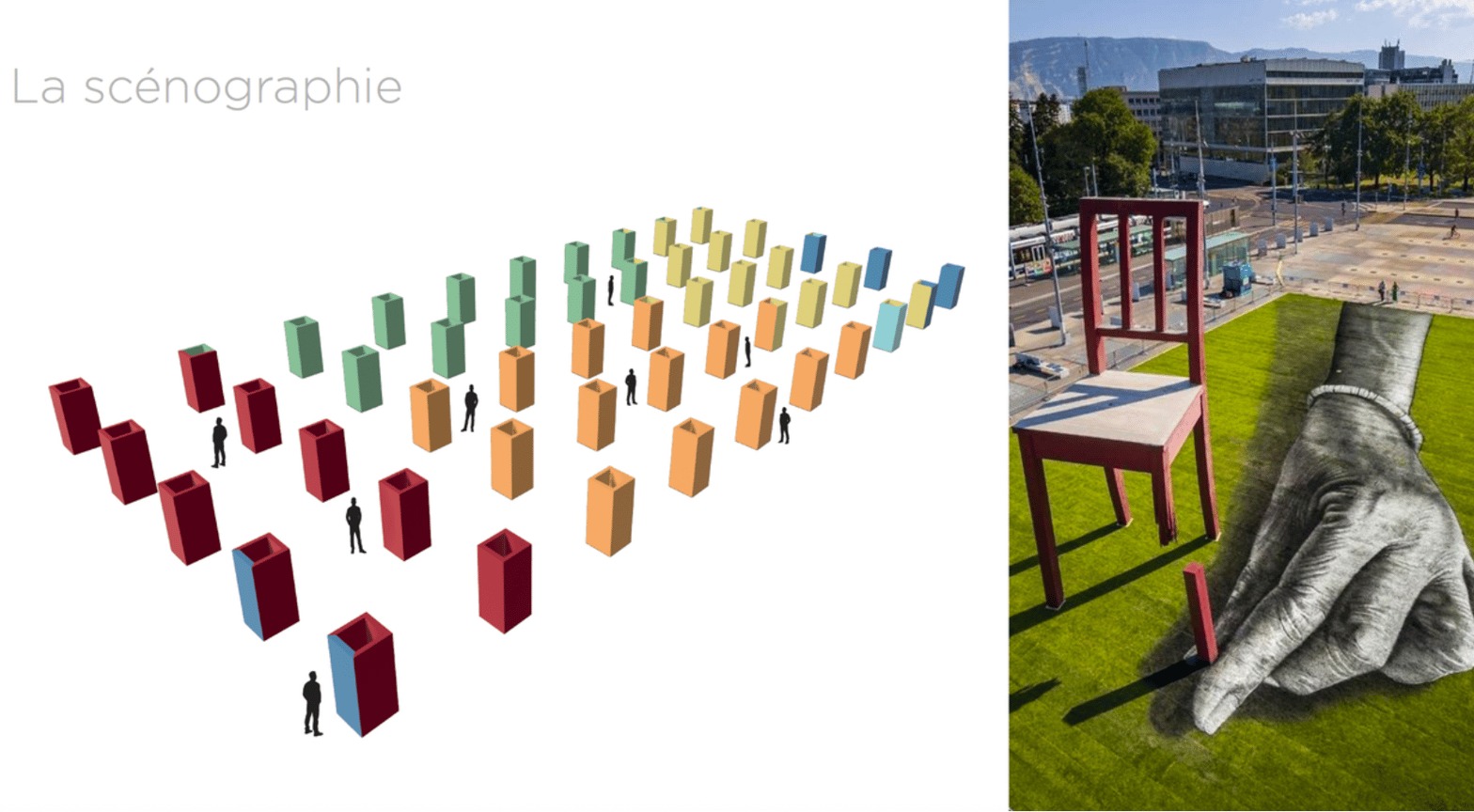 1500 m2 d’expo, 50 colonnes de 2m, 195 nations. Le projet avance bien. On en est à la phase écriture, direction artistique et au montage juridique avec la constitution d’un fonds de dotation dans les prochaines semaines. Lancement le 3 décembre à Genève.