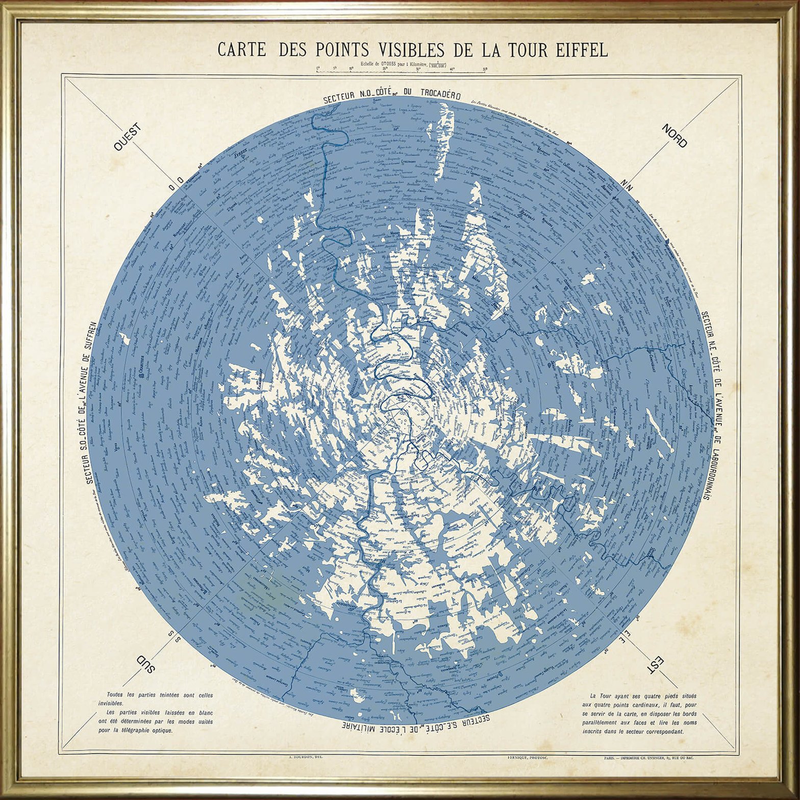 En 1889, les cartographes Bourdon et Fernique se sont posés la question : que voit-on depuis le sommet de la Tour Eiffel? Et puisque que c'était leur métier, ils en ont fait une carte, pour l'Exposition Universelle.